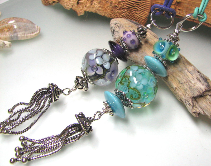 Kleine Blütenmeere, als Quastenanhänger am Lederband....